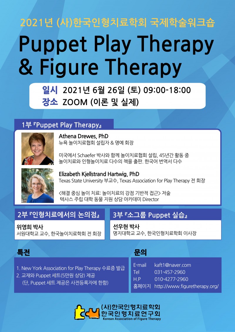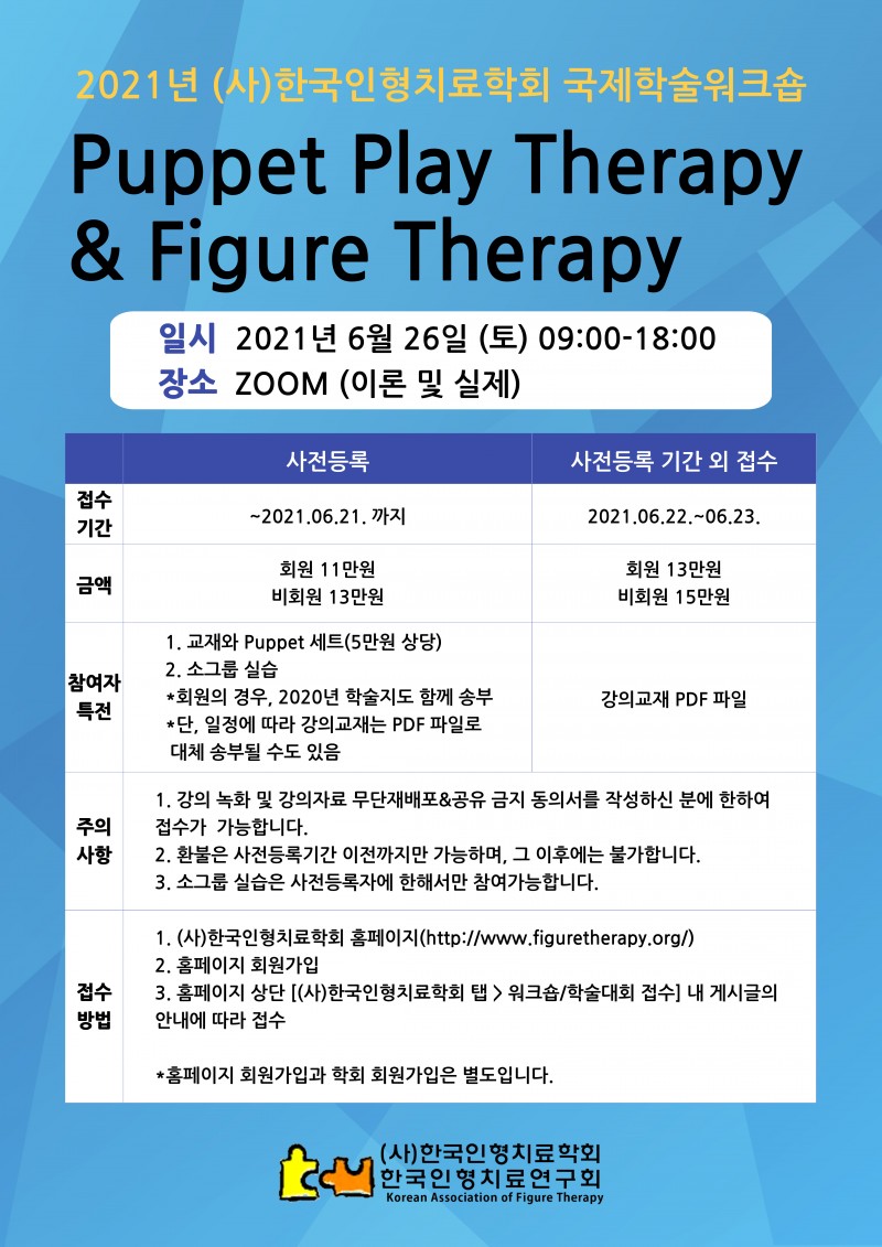 | 제목 | 2021년 (사)한국인형치료학회 국제학술워크숍 『Puppet Play Therapy & Figure Therapy』 |